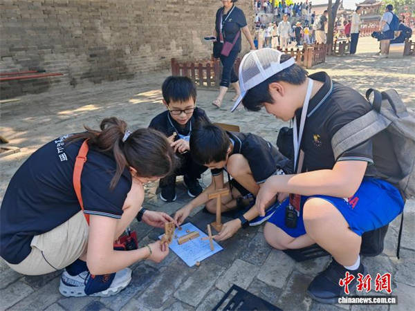 海外华裔青少年体验搭建斗拱。 郝强 摄