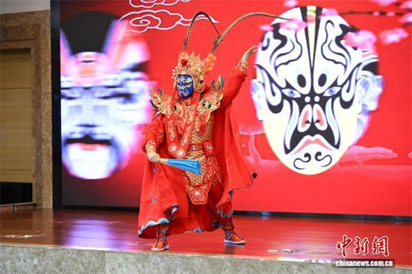 图为开营仪式上的川剧变脸表演。 杨梦逸 摄