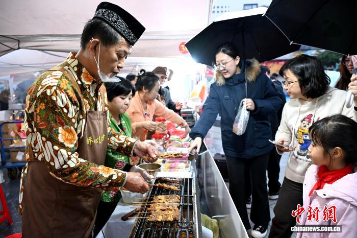 2月28日,“海丝侨味·荟聚五洲”——2026年侨家乐·福建省华侨美食文化交流活动丰泽专场在泉州市建筑服务产业园启动。本届活动以“海丝侨味·荟聚五洲”为主题,精心组织了130多个特色美食展位,既有印尼沙爹、南洋糕点的异域风情,也有闽南润饼、炸醋肉的家乡味道。图为印尼特色美食吸引顾客购买。中新社记者 吕明 摄