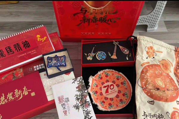 “透过这些礼物能感受到甘肃的文化底蕴和敦煌的艺术魅力。”在白俄罗斯,来自甘肃的香韵繁花丝带和莫高窟发光冰箱贴等礼物大受侨胞欢迎,他们表示:“每逢新春,暖心包就成了我们心里最特别的一份期待,这份可触摸的心意既温暖怡人,又弥足珍贵。”