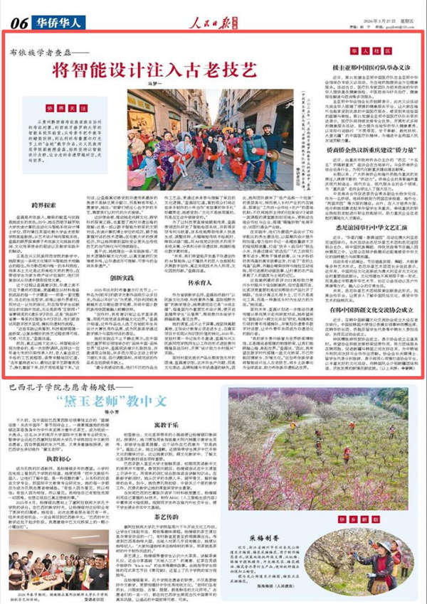 “我的家乡贵州被誉为世界桥梁博物馆,正是建设者搭建的物理桥梁,让我们能跨越山海、奔赴世界。”查磊说,“因此,我希望在数字时代搭建一座文化桥梁,尽己所能回馈家乡、反哺文化。”这位布依族学者将智能设计注入古老技艺,将乡土故事化为全球语言,助力布依族非遗抵达世界。(马梦一)