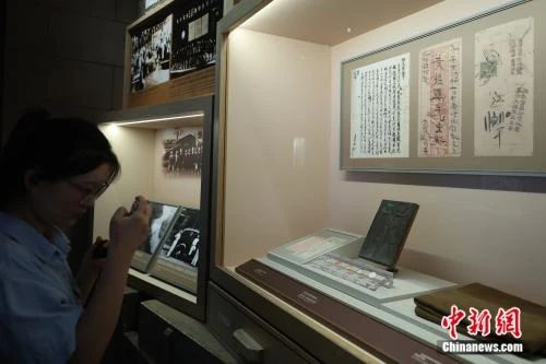 7⽉7⽇,《为了⺠族解放与世界和平》主题展览在位 于北京的中国⼈⺠抗⽇战争纪念馆开幕。图为侨批、华侨捐款收据等⽂物资料展出。 中新社记者 蒋启明 摄