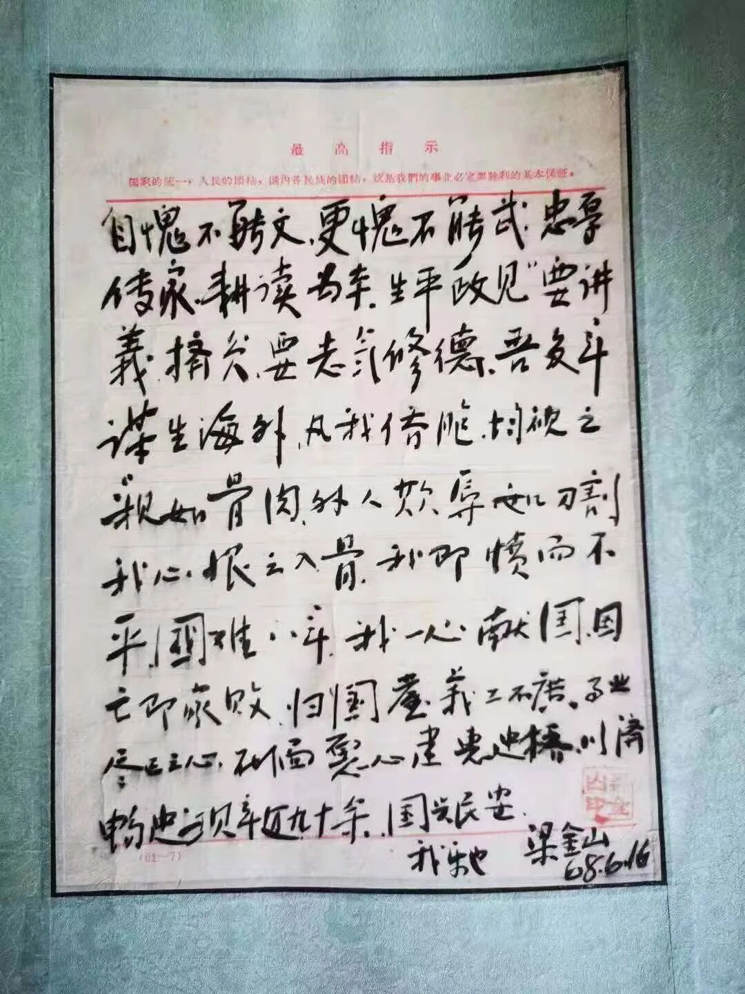 爱国侨领梁金山手书《告诫子孙书》。(受访者供图)