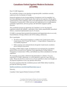 《加拿大憲報》第一部分,第160卷,第1期-外國影響透明度和問責條例