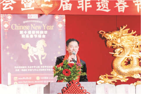 蒙特利爾華商會主席張仕根首先致開幕詞,他深情地表示,十年風雨兼程,十度春回楓城。歡樂春節廟會承載著鄉情與夢想,銘刻著華社團結奮進、攜手同行的足跡,見證了中華文明在多元文化中紮根吐綠的蓬勃生機,在歲月鍛煉成蒙城華社的一張亮眼的文化名片。今天的廟會,我們邀請近百長者免費共進歡樂春節廟會晚宴,欣喜看到年輕一代攜子女到場體驗傳統年俗,這一幕幕溫情的場景是中華民族尊老愛幼、守望相助美德的生動寫照;這一幀幀溫暖人心的畫面正是華人社區血脈相連、文化賡續的動人縮影。