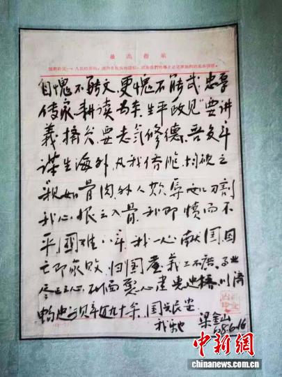 爱国侨领梁金山手书《告诫子孙书》。(受访者供图)